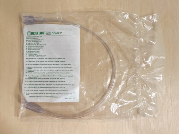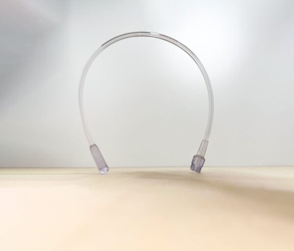 The hose is about 15″ long, has a ‘1/4″ push-on’ opening on one end and ‘screw threads’ on the other end (that screws into the top of the humidifier).